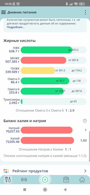 день калории вечером вношу, но рацион заранее не планирую. Ем то,