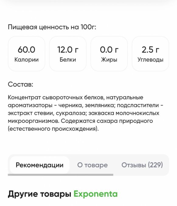 Ещё мне нравится кисломолочный напиток "Экспонента". Там белка 30гр в стакане👌💪 Но у меня пунктик с белком, стараюсь добирать норму обязательно) Помогают такие штуки)