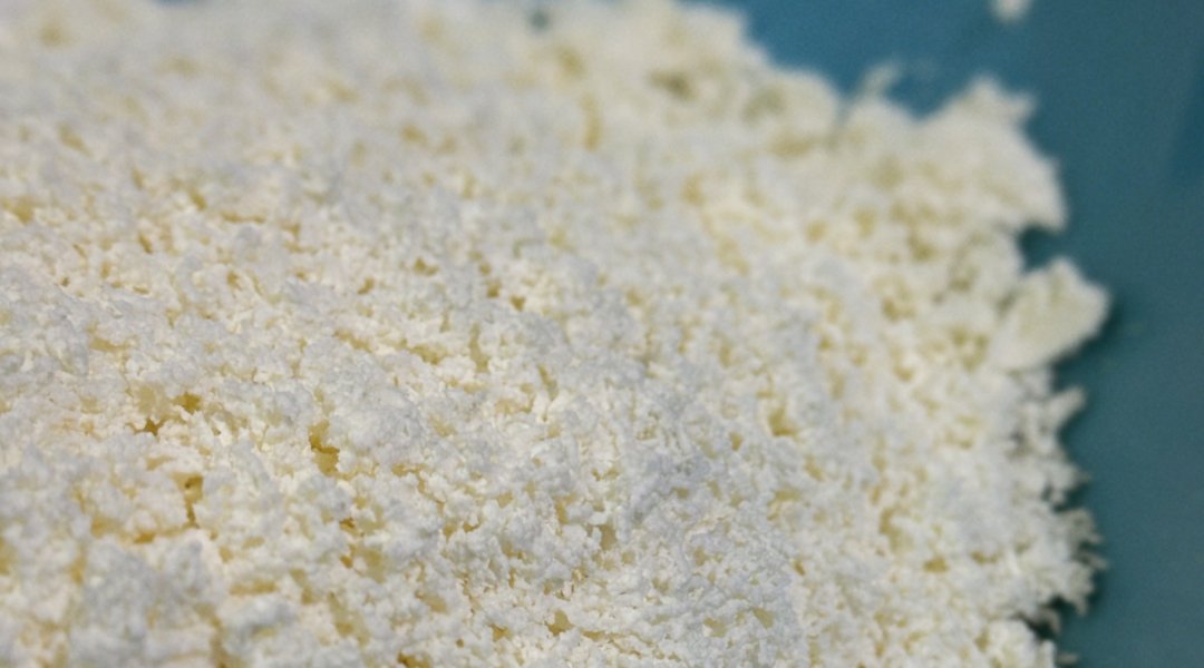 Протри творог через сито либо погружным блендером (для более нежной текстуры сырников).