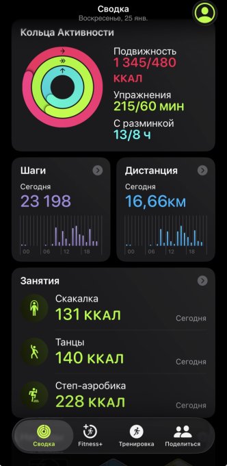 | Итого за день | 5645 | 2316 | 132 | 63 | 304 |