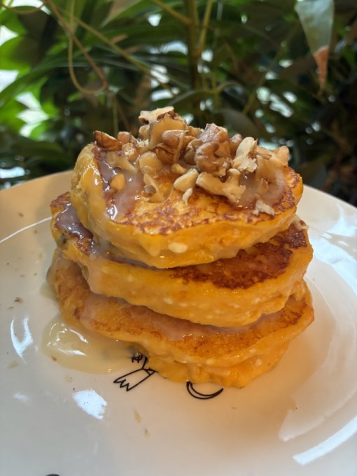 ▪️Завтрак из двух блюд) Ну с первым все понятно, а на второе - тыквенные панкейки.