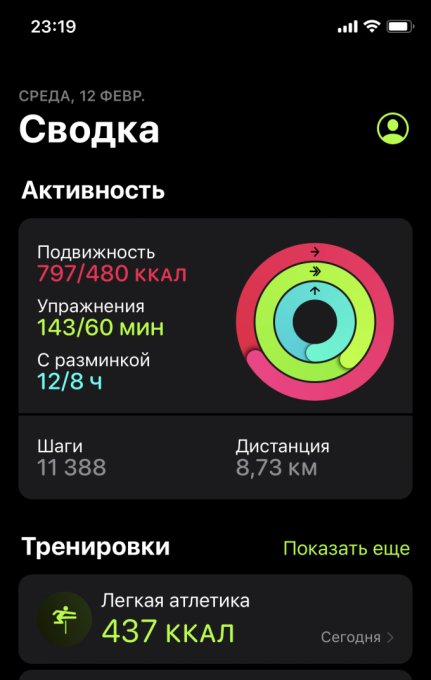 | Итого за день | 4400 | 2368 | 107 | 50 | 365 |