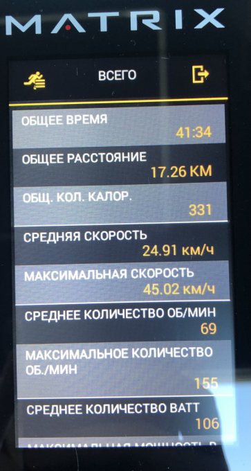 Уже второе воскресенье подряд велики радуют нормальными показателями. Даже выкрутила сегодня чуть большее сопротивление, чем обычно. Поняла, что потяну. Странно, что это не отразилось на средней скорости. Думала, в итоге больше получится. Но все равно довольна.