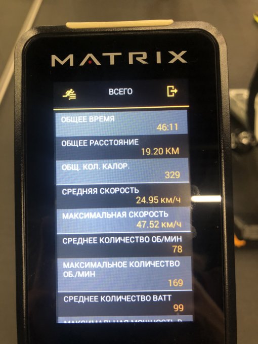 Типичный вторник. Не выспалась, упадок, на фитнес на хотелось, даже уговаривать себя сил не было, поэтому просто как зомби на автомате собралась и пошла. Плющилась всю дорогу, не верила, что из этого выйдет что-то путное, а в итоге отлично покрутила педальки, прям с большим удовольствием. Правда, тренер сразу предупредила, что никакой жести сегодня не планируется, так что, можно сказать, лайтовая поездочка. Решила воспользоваться случаем и попробовать побить свой рекорд максимальной скорости. "Втапливала" на втором сопротивлении, на третьем, на четвёртом... Силы были, но ни фига. 47.5 км/ч. Как я когда-то 48.7 км/ч умудрилась набрать - ума не приложу. Потом вяленькая полудохлая аэробика (тут уже сил не хватало) и растяжка.