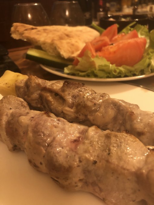 Хорошо потренировалась, значит, надо хорошо покушоц. На ужин шашлык, вкусная лепешка и большая тарелка овощей 😊