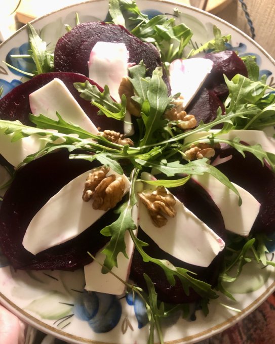 Я бы бальзамического уксуса добавила. Но, насколько я помню, бальзамик вам не зашел. А выглядит красиво, кстати. Можно попробовать с маринованной свеклой, а не просто вареной.
