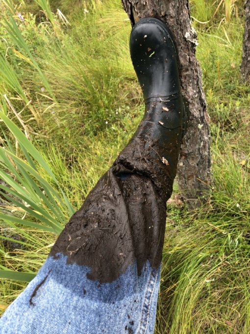 Странная конструкция в самом сердце болота. Какая-то времянка, ещё и скамейка внутри. Жутковато немного, если често. В голову приходят мысли о беглых каторжниках) Собаку Баскервиллей не слышали, но пронзительное мяуканье парящего над головами чибиса - ничуть не хуже)