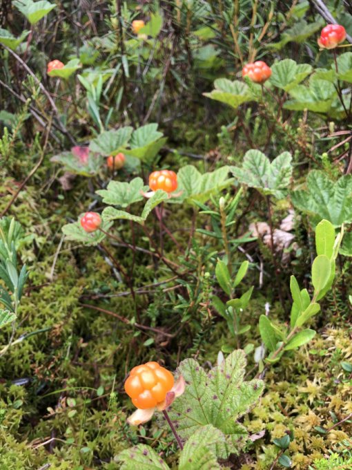 Это мы в лес сегодня опять ходили, на болота, за морошкой. Эх, на пару дней бы попозже - было бы идеально. А то ж лето холодное, стоило немного выждать) Но всё равно пару килограмм набрали, а сколько ещё в рот!..
