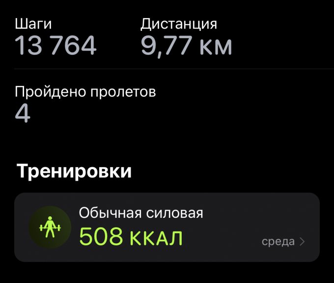 Нормальный скрин сделать в течение дня не успела. 879 ккал расход энергии активности мне насчитали.