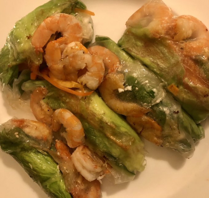 Ммм креветочки с салатом и хрустящей коркой рисовой бумаги — выглядит аппетитно! Просто кушать не руками, а палками))