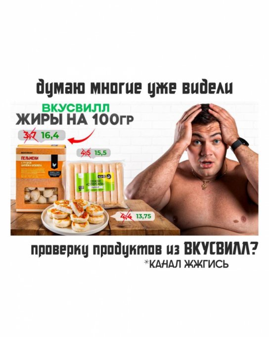 ▪️Несколько дней назад вышло очередное видеоразоблачение недобросовестных маркетологов. Про несоответствие данных кбжу на этикетке и по факту. На этот раз жертвой стал ВкусВилл. Хотя думаю, что это многих касается. Подозреваю, что те легкие сосисочки от Зеленой линии не такие уж легкие) Да и холодцы мои регулярные наверняка пожирнее, чем указано)