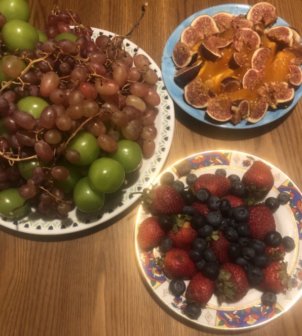 Из приличного только черная икра (белки все же) и фрукты (виноград шайн мускат, манго и инжир - угли).