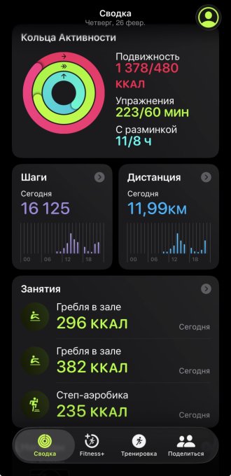 ▪️По активности. Один час степа и два часа гребли. Первый час - по плану, второй - подарочный.
