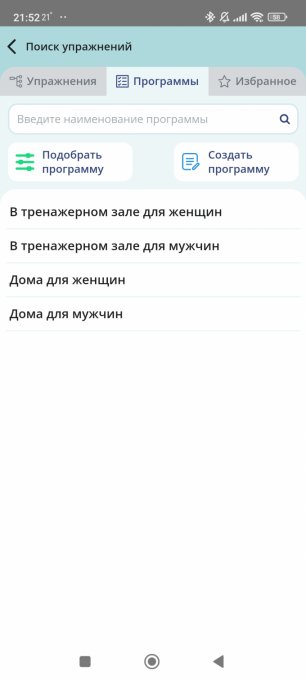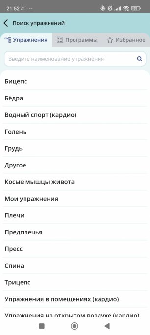 В разделе тренировок я могу только добавить свое упражнение, а ничего готового не вижу.