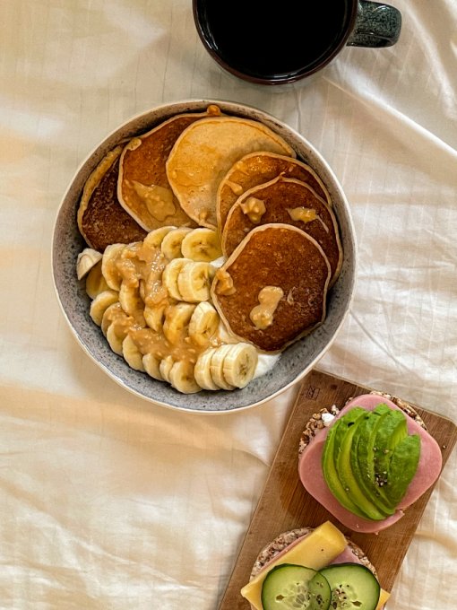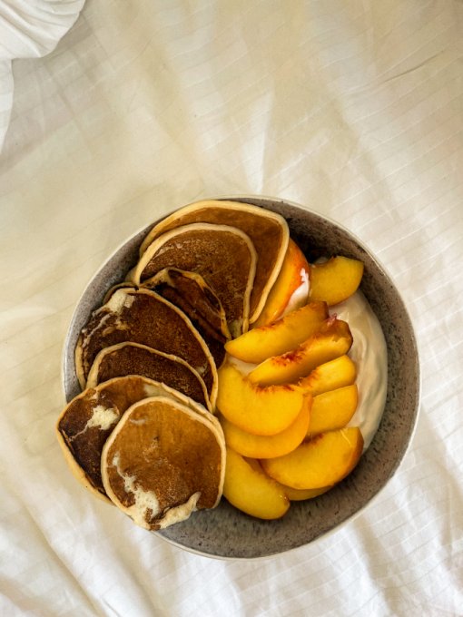С утра уже занятия на осанку и красивык оладушки (красивые оставила молодому человеку, а себе взяза менее удачные)!