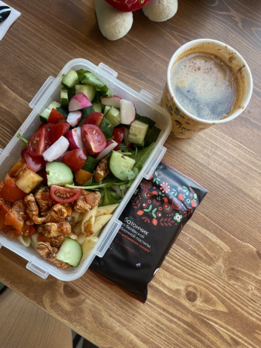 Но главное - съесть ровно столько, сколько надо! Хоть я добавила себе вкусняшку в виде прот.батончика и пастилы, но это нужно быдо сделать для умиротворения с эмоциональным голодом)