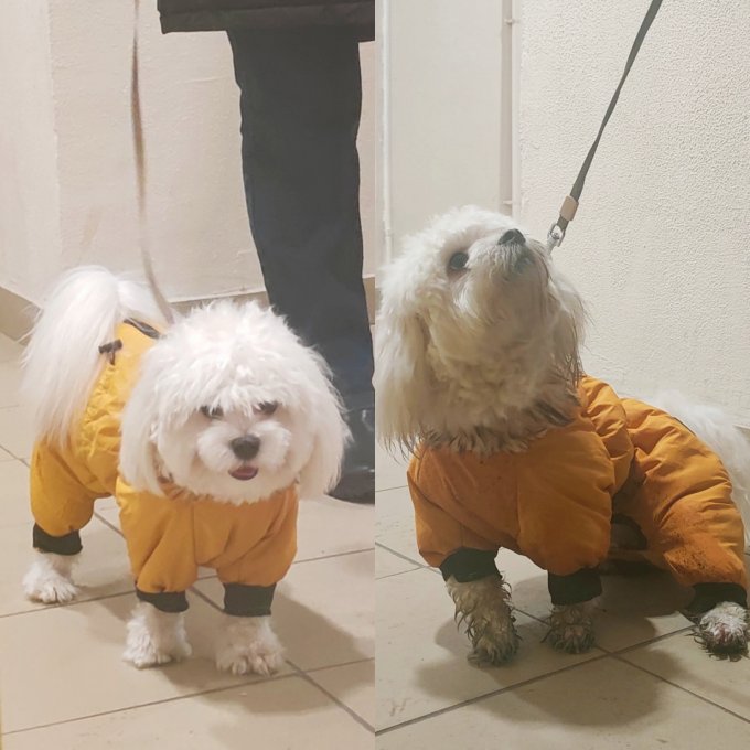 В такую погоду очень помогает комбинезон, сегодня видела корги в комбезе им с короткими лапами он тоже необходим, иначе пузо не отмоешь 😁