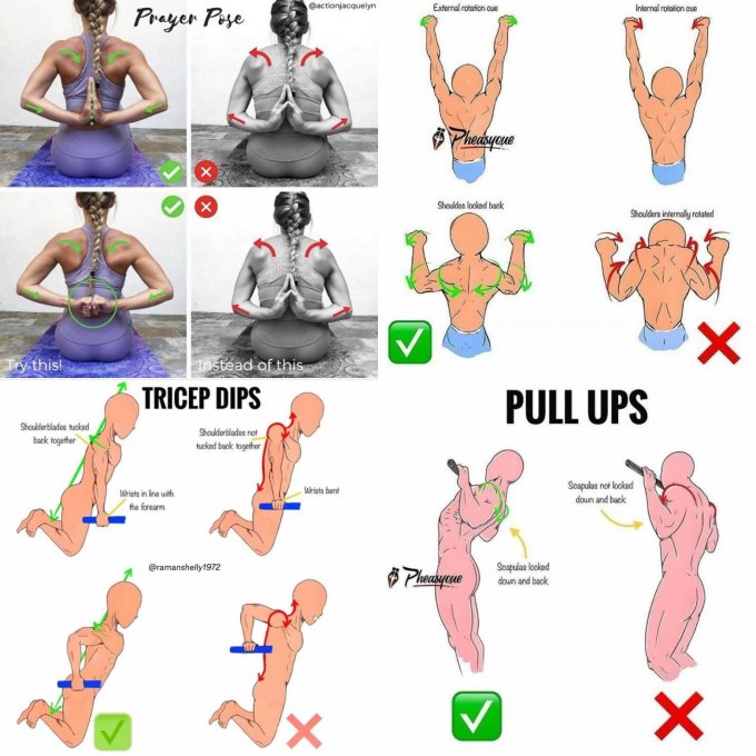 Опять начиталась про осанку и поставила себе "диагноз" завёрнутые плечи. Говорят что это из-за зажатой грудной клетки и слабых мышц спины, что это может сильно мешать в стойке на руках, подтягивании и везде где нужны раскрытые плечи.