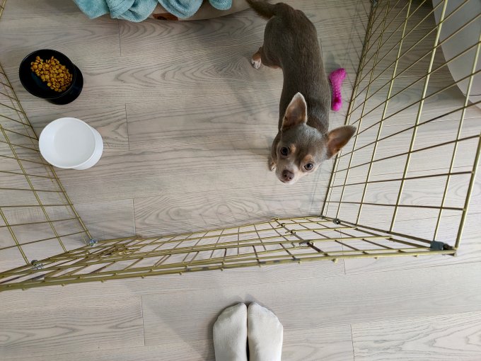 На фото как я обычно жду пока Фродо позавтракает в час дня. У него ритуал: подтянуться после сна, погулять, побегать/попрыгать/покусаться и потом он начинает подглядывать на корм.