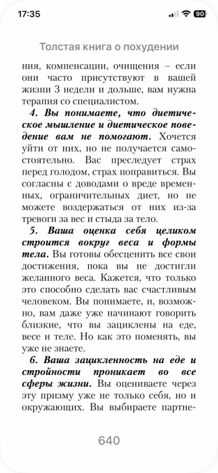 В «Толстой книге» (ищите через менюшку приложения ссылку на магазин) описаны психологические приемы и особенности пищевых срывов.